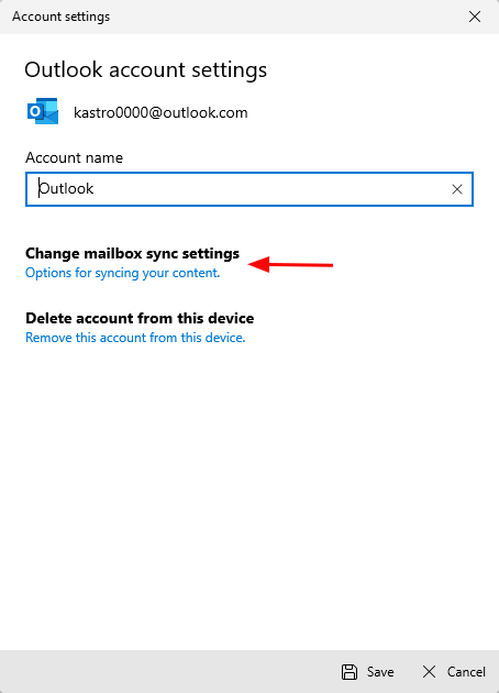 Step 2: Select the email account and choose Manage → Change mailbox sync settings if needed.