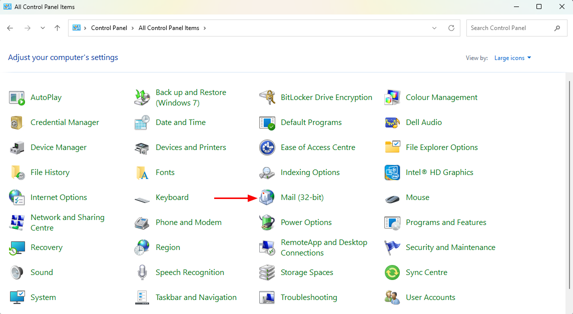 Step 2: Open Control Panel → select Mail (Microsoft Outlook).