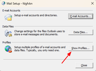 - Open Run (Windows + R) → type: outlook.exe /manageprofiles