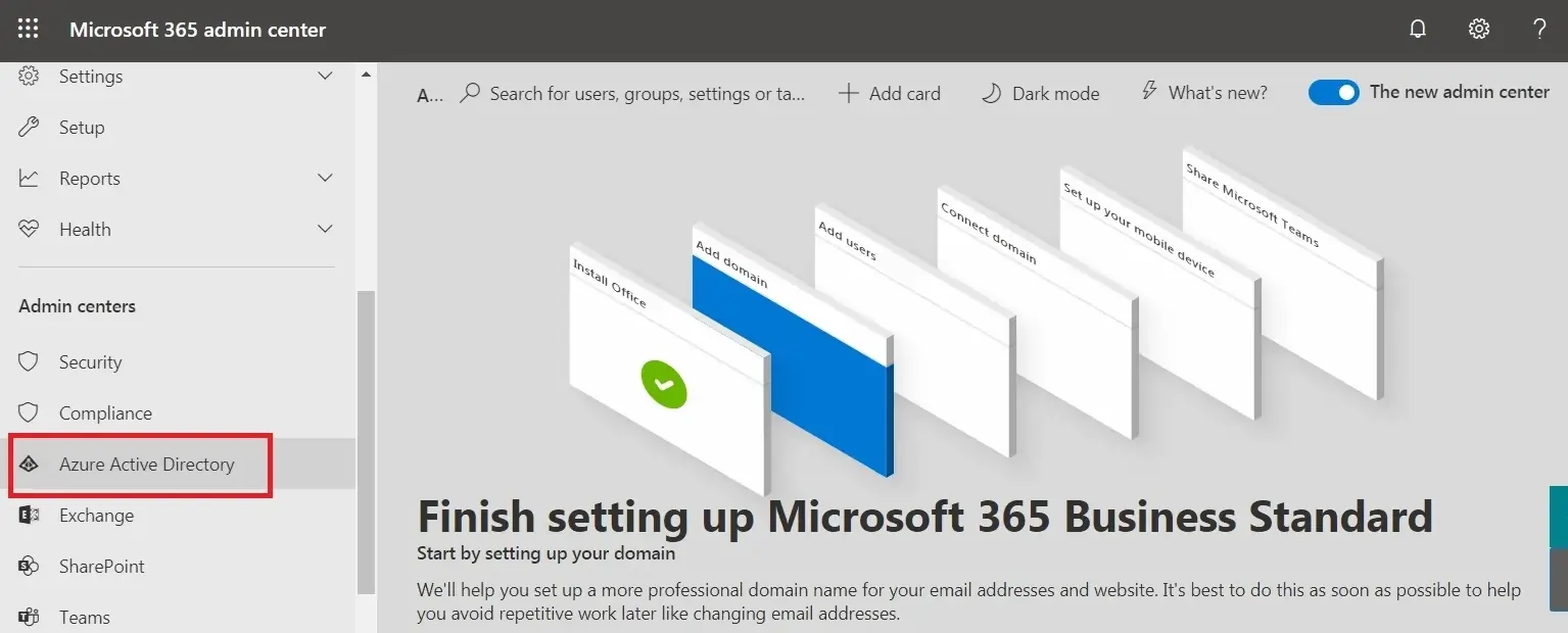 - Step 3: From the Admin centers section, select Azure Active Directory to proceed.