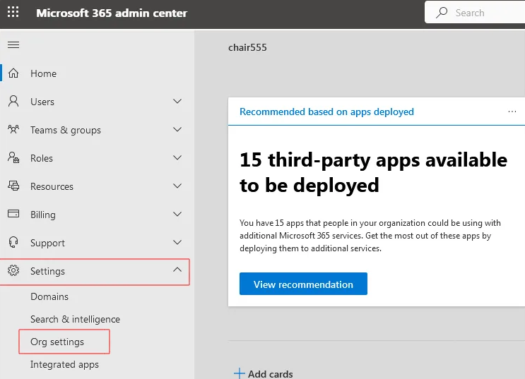 - Step 3: Open the navigation menu in the top-left corner, select Show All, expand Settings, and then click on Org Settings..