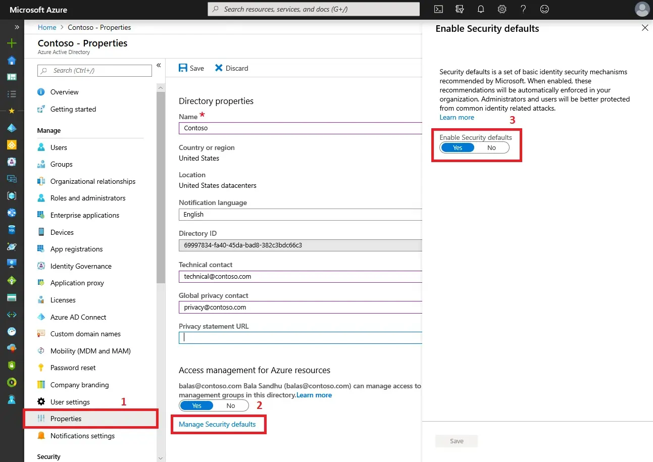 In such situations, disabling security defaults may be necessary. Keep in mind that only a global administrator can make these changes.
