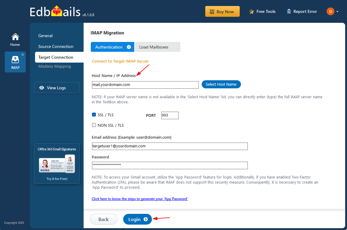 After completing the purchase, restart the application and sign in again using the same email address and password provided during the purchase to activate your license. - Select ‘IMAP (Gmail, Outlook & more) Migration’