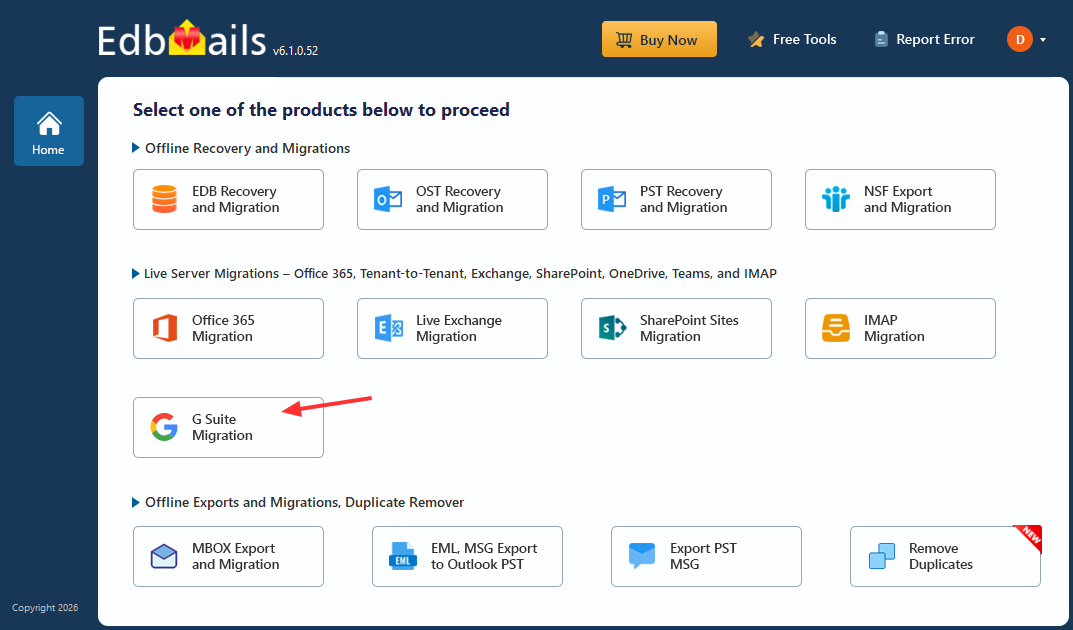 See EdbMails system requirements for G Suite migration.