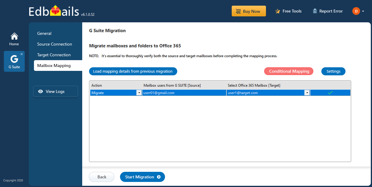 - Automatic Mailbox Mapping: Automatically map source and target mailboxes to simplify configuration and reduce errors.