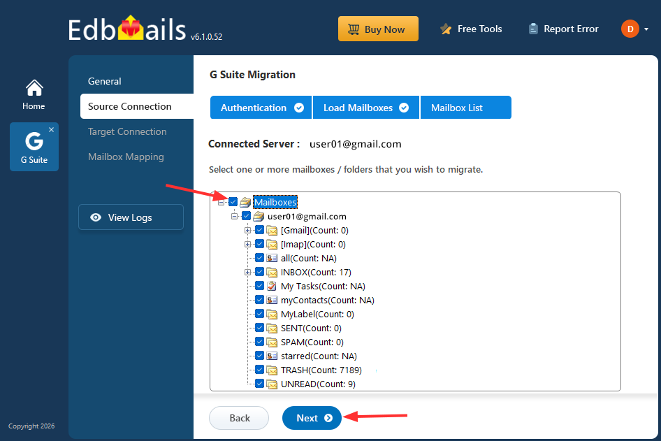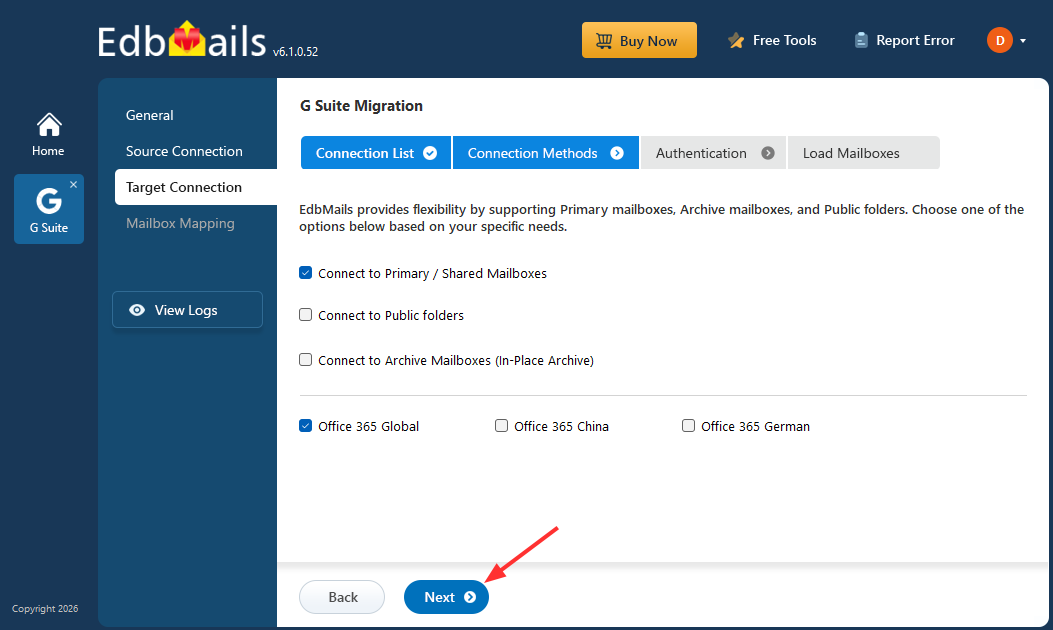 Follow the steps below to migrate mailboxes, contacts, and calendars from Google Workspace to Office 365 using EdbMails.