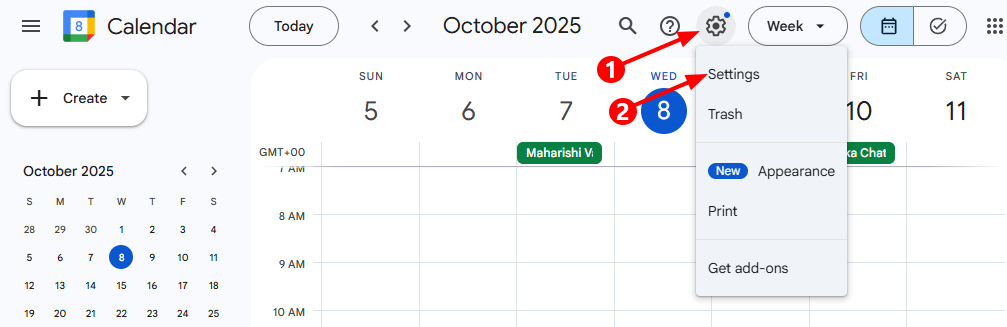 - Click the Settings gear icon in the top-right corner, then select Settings from the dropdown menu.