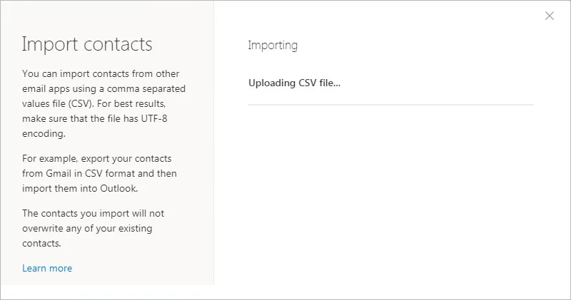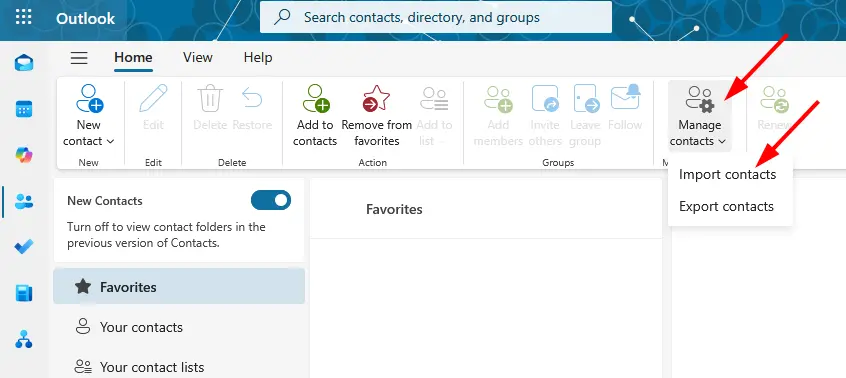 - Click on Manage contacts and then select Import contacts, as shown below.