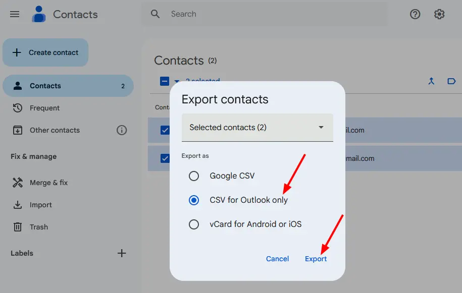 - That’s it! Google will now export your selected Gmail contacts and save them in the chosen file format. Once the process is complete, you can find the exported file in your Downloads folder.