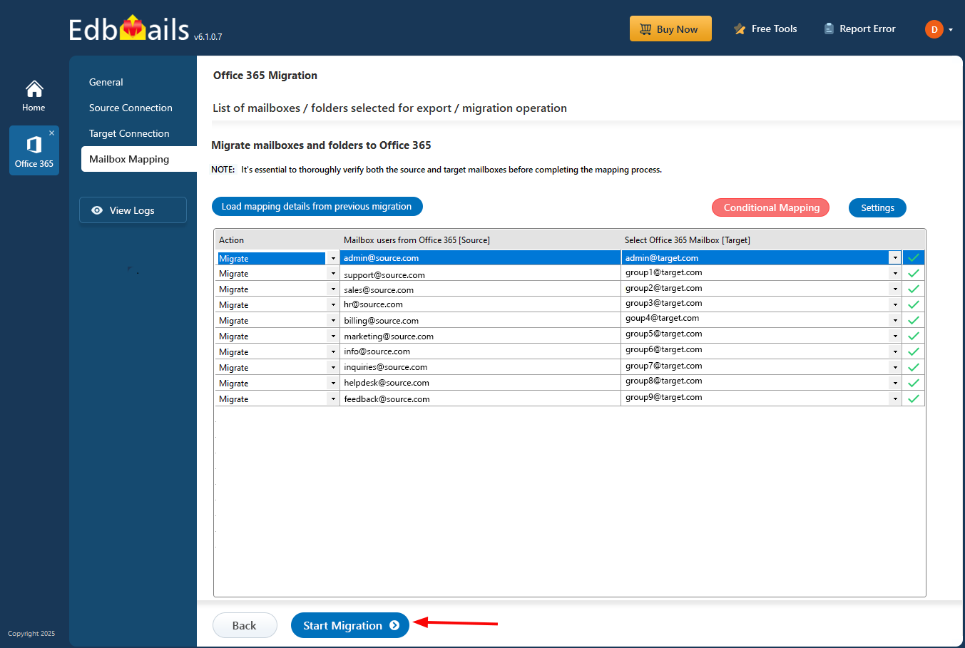 - Use the mailbox mapping feature to connect source and target mailboxes accurately. EdbMails also provides automatic mailbox creation for the target server, simplifying management of multiple mailboxes.