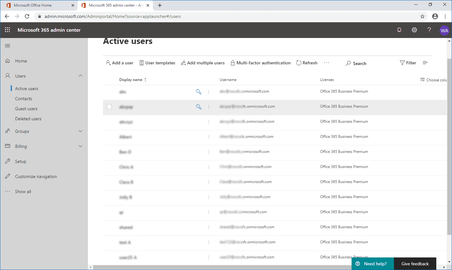 4. Under users menu, select Active users
